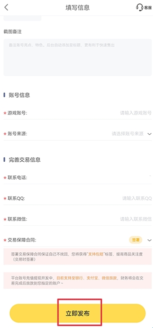 4、然后将商品的详情信息及个人信息完善后点击立即发布即可