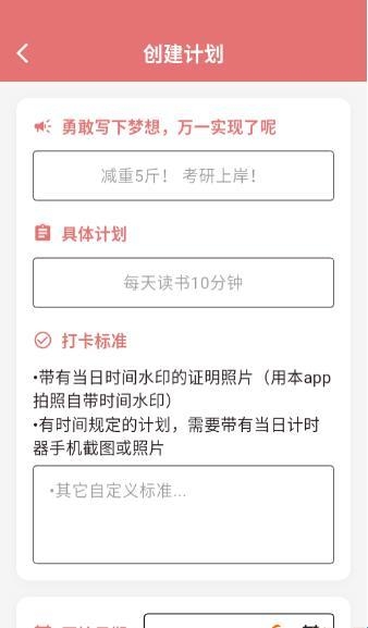 3、之后就可在“创建计划”中来写下自己的梦想,输入详细的计划内容。