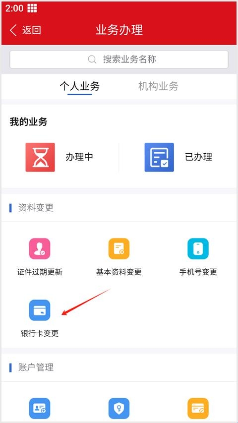 2、选择下方银行卡变更