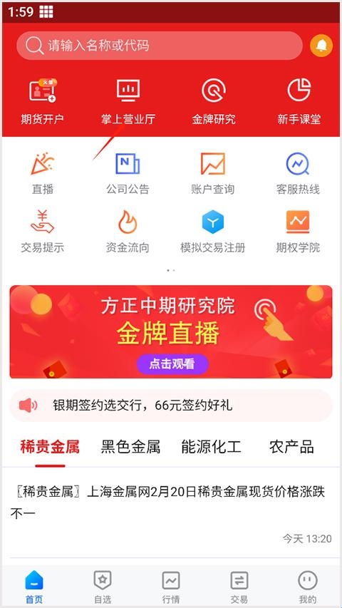 有色金属、贵金属、能源、煤炭化工、农产品、股票指数等版块期货期权行情,全球外汇行情、个股行情等
