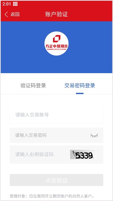 1、进入方正中期期货app首页,选择“网上开户”;