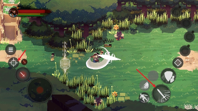 2、遭遇敌人后,点击左侧瞄准键索敌,右侧即可进行攻击、防御和闪避。