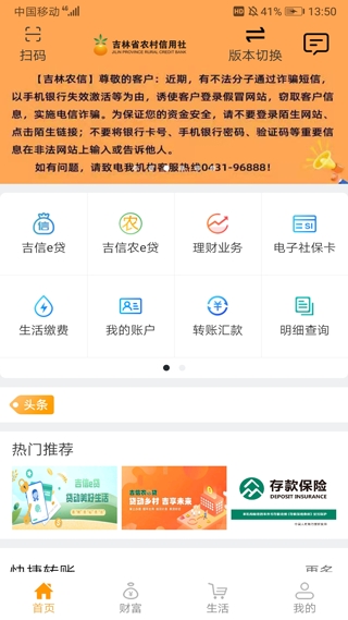 吉林农信2026版是一款智能的电子银行软件,用户们可以在线上办理用户存款业务,支持转账和汇款,为用户们提供便捷支持。软件内还包含了余额查询、交易明细、手机充值等内容。而且,线上交易也很安全,多重密码保护设置,提高你的交易安全!