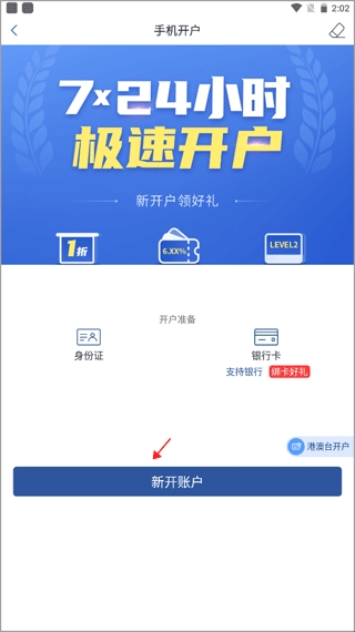 2、点击中间唯一的按钮“新开账户”。