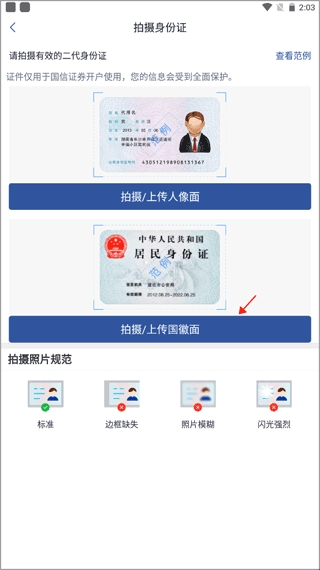 4、上传及的身份证正反面照片,一定要拍的清楚、标准,上传之后跟着提示签署相关协议,进行视频认证过后就能开通新的账户了。