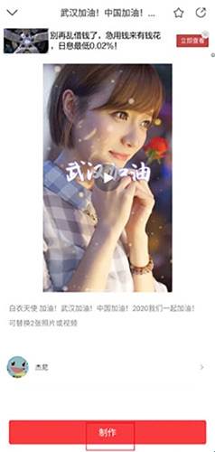 1、用户在“飞推”页面中点击“武汉加油”的按钮,选择其中一个视频特效;