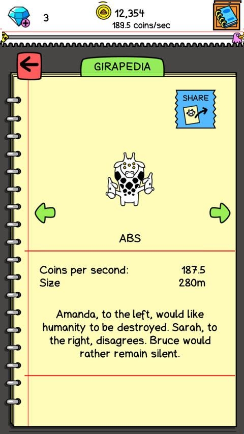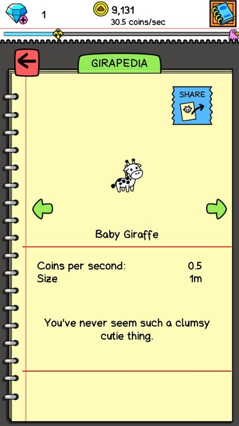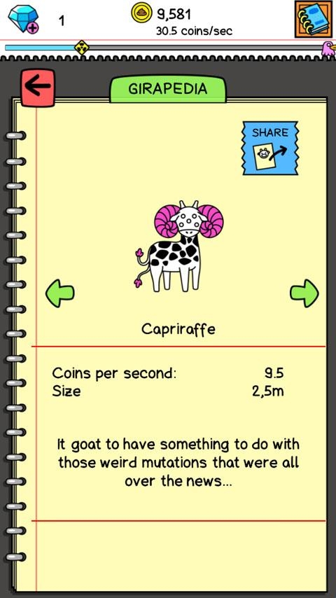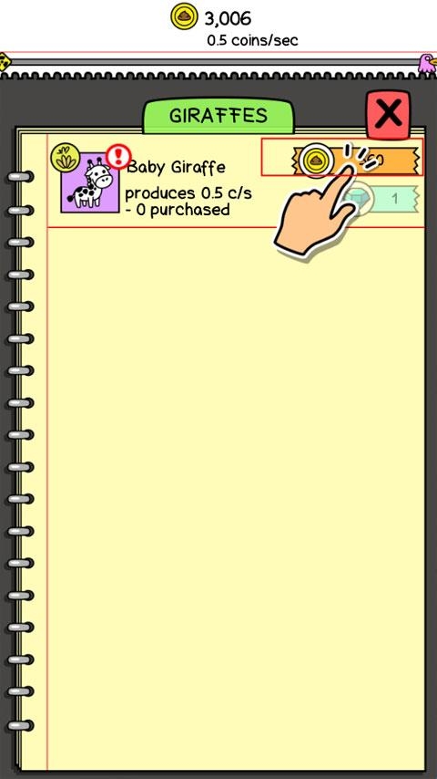 3、将两只长颈鹿合成为一个新的长颈鹿,不同种类的长颈鹿生产出来的金币数量完全不同。