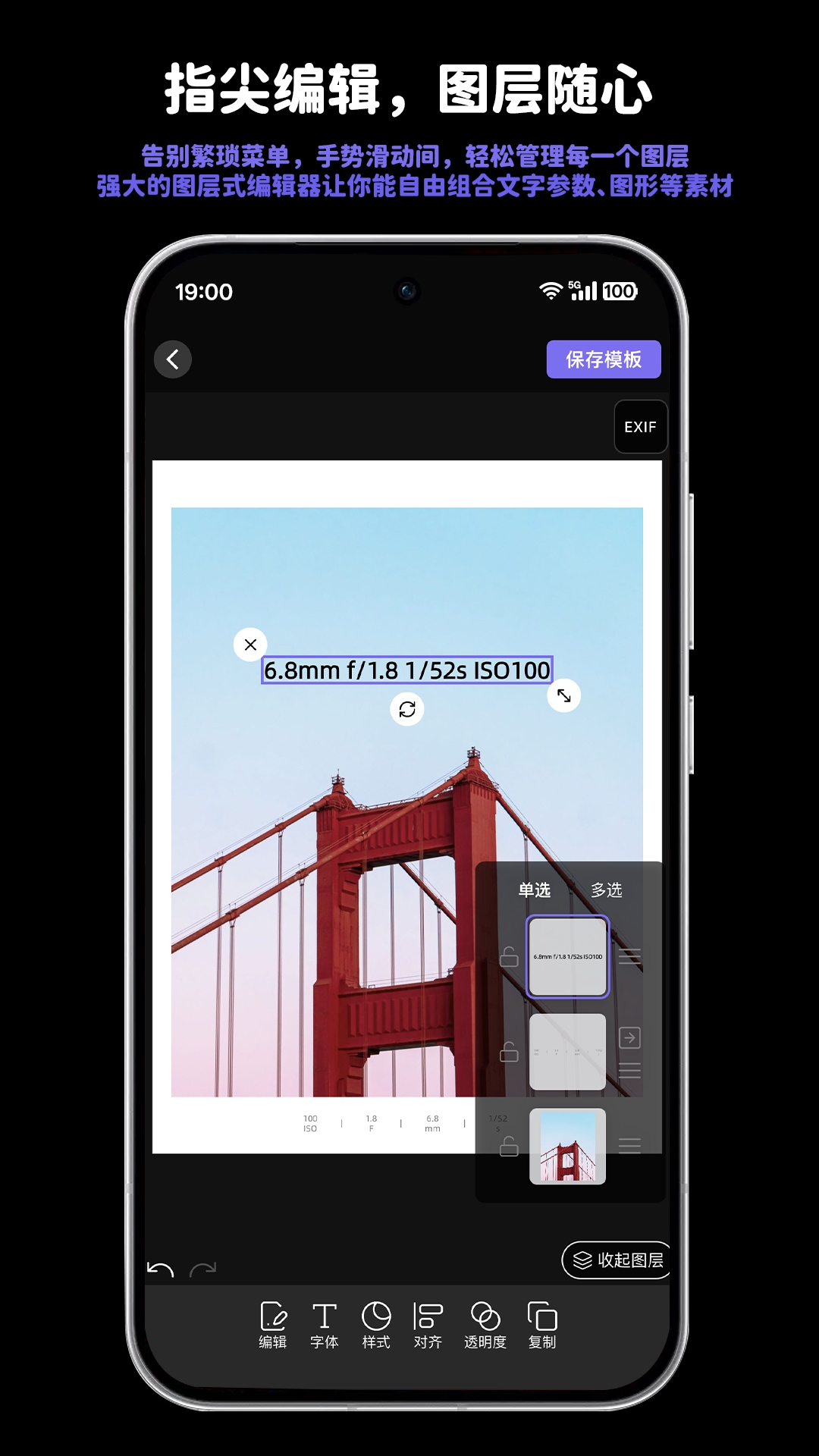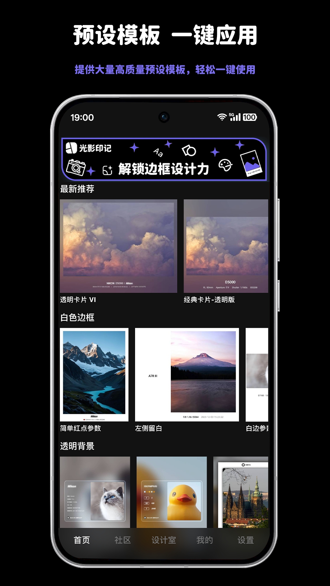 2、海量官方模板:内置100+款精心设计模板,一键添加专业参数水印。