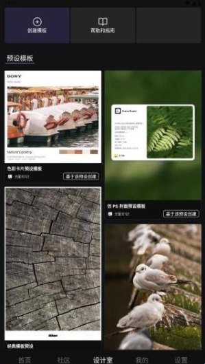 3、设计室页面具备模板创建功能,同时提供使用指南分享,助您轻松完成修图操作。