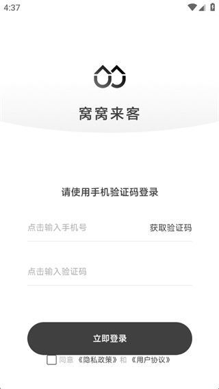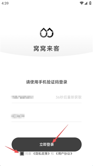4、输入手机号,获取验证码并填写,勾选同意协议,点击“立即登录”即可。