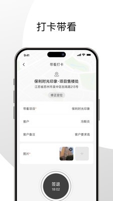 1、打卡带看功能便捷实用,实时记录带看详情,自动同步行程与客户反馈,销售过程可追溯、可复盘。