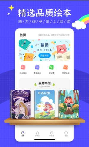 海量绘本:极具特色的国学绘本,大量优质的国内外绘本精选。