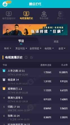 1、酷云eye提供分时段收视率查询,可查看节目在特定时间段的收视表现。