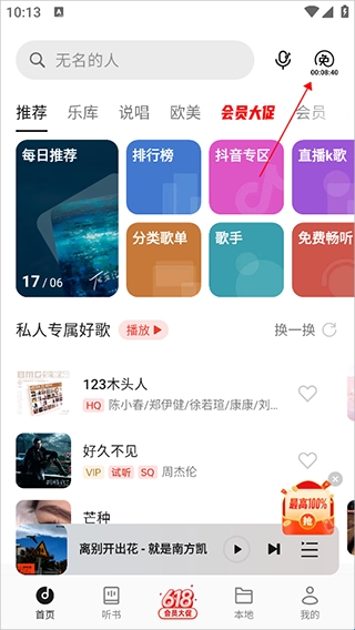 1、免费听歌可以进入页面后点击首页右上角的免费听歌的图标