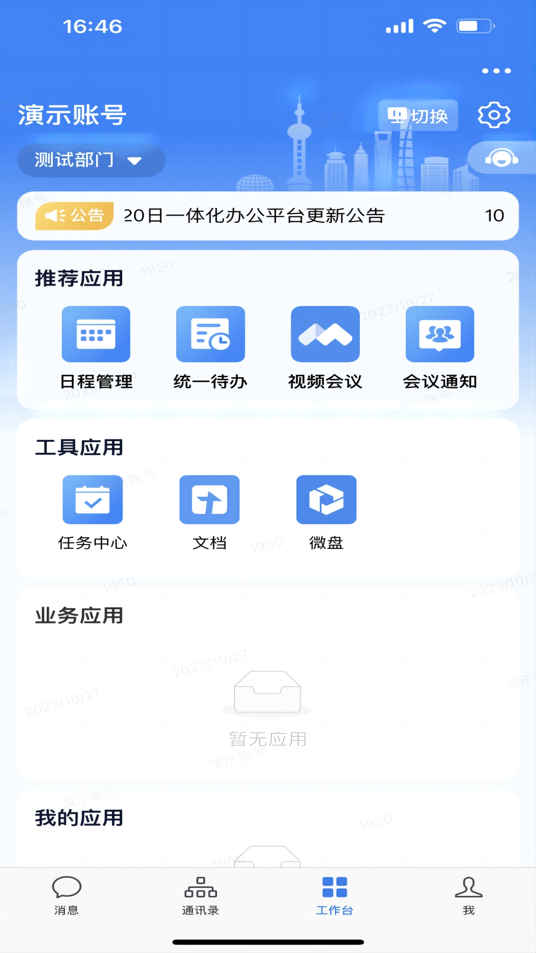 1、是在全信创体系下,为满足全市一体化协同办公应用而建立的移动办公平台。