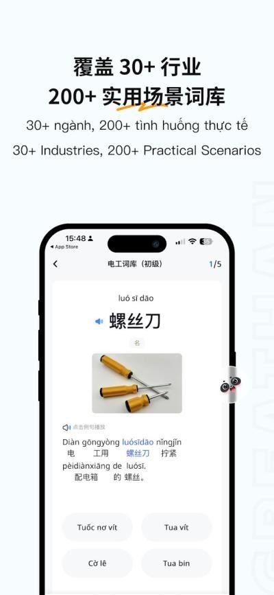 2、greathan安卓覆盖30多个行业,收录200多个实用情景词汇,内容从基础中文词汇延伸至工作场景会话,助力您在学习、工作、生活等各类场景中运用中文。
