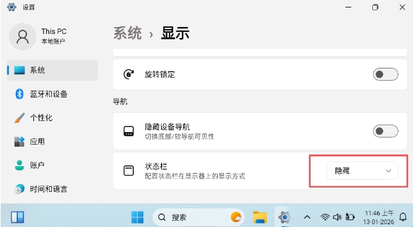 4、选择隐藏状态栏即可。