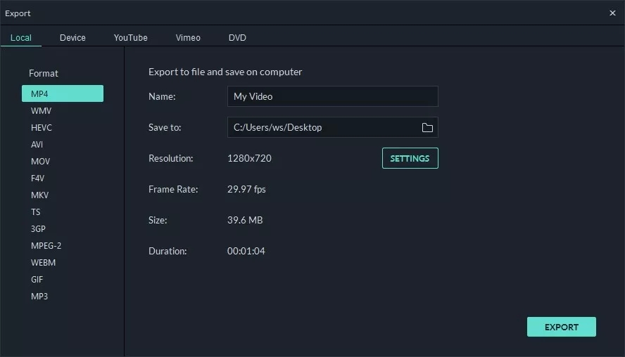 当您对亮度满意时,单击“导出”保存亮显的视频。通过选择“格式”,可以导出任何流行格式的视频。