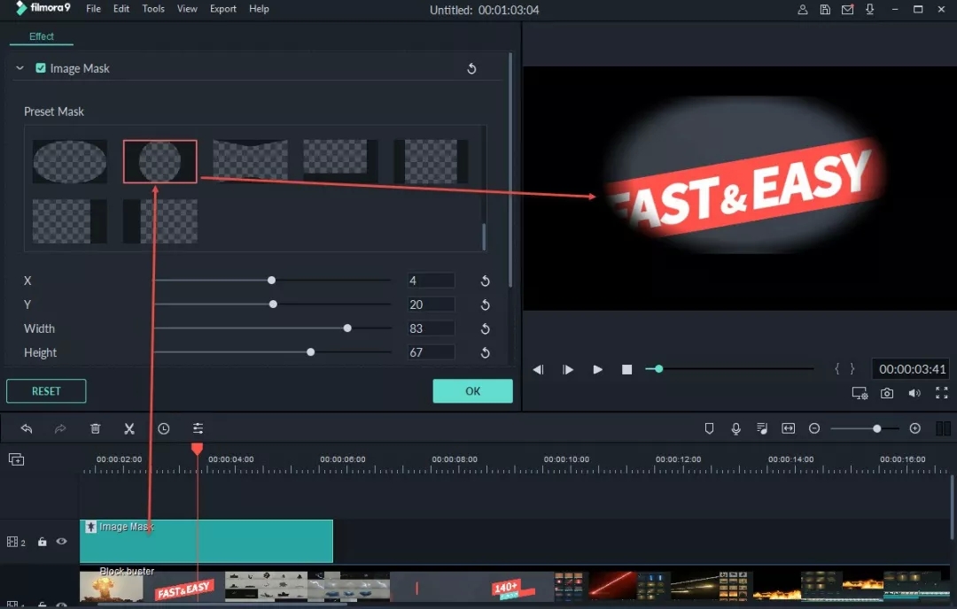 双击时间线中的图像遮罩效果,然后选择您喜欢的图像形状,然后您可以在查看器中看到效果,调整形状和位置以突出显示视频剪辑中需要的区域。这是另一种使视频剪辑的特定区域相对明亮的方法。