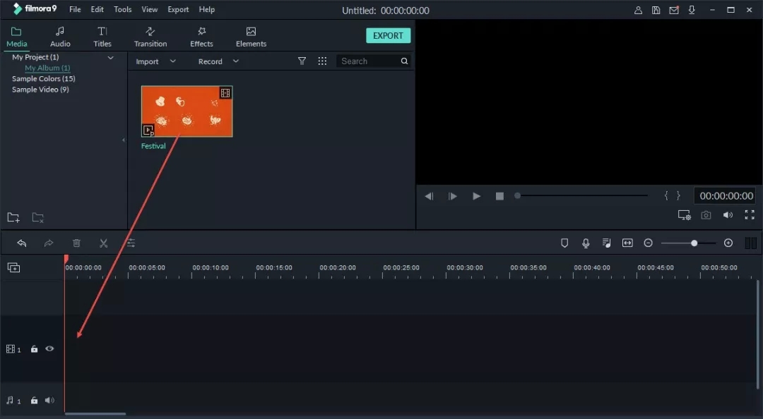 打开Filmora,然后选择“新建项目”。您可以单击主窗口上的“导入”并从计算机中选择文件,也可以简单地将文件拖放到用户相册中。支持所有流行的视频格式,如avi、mp4、3gp、3g2、mov、flv、vob、m4v、mpg、mpeg、ts、trp、m2ts、mts、tp、dat、wmv、mkv等。您可以在技术规格中找到有关支持格式的更多信息。