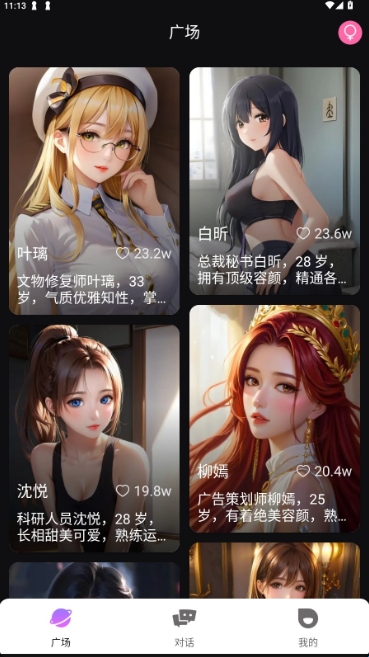 1、软件拥有多个个性鲜明的代理角色,可以24小时陪伴用户在线聊天。
