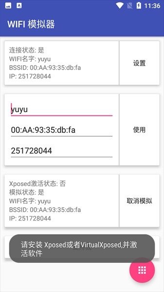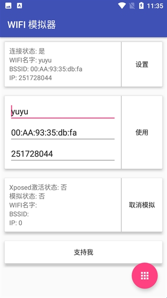 2、操作简单直观,用户可以轻松自定义设置手机所连接WiFi的名称、BSSID、IP等信息,实现对WiFi环境的模拟;