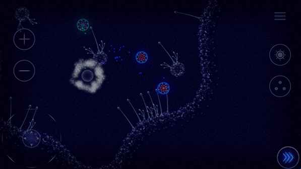 2、进入游戏后,你将操控蓝色的细胞,点击细胞再点击到目的地即可移动;