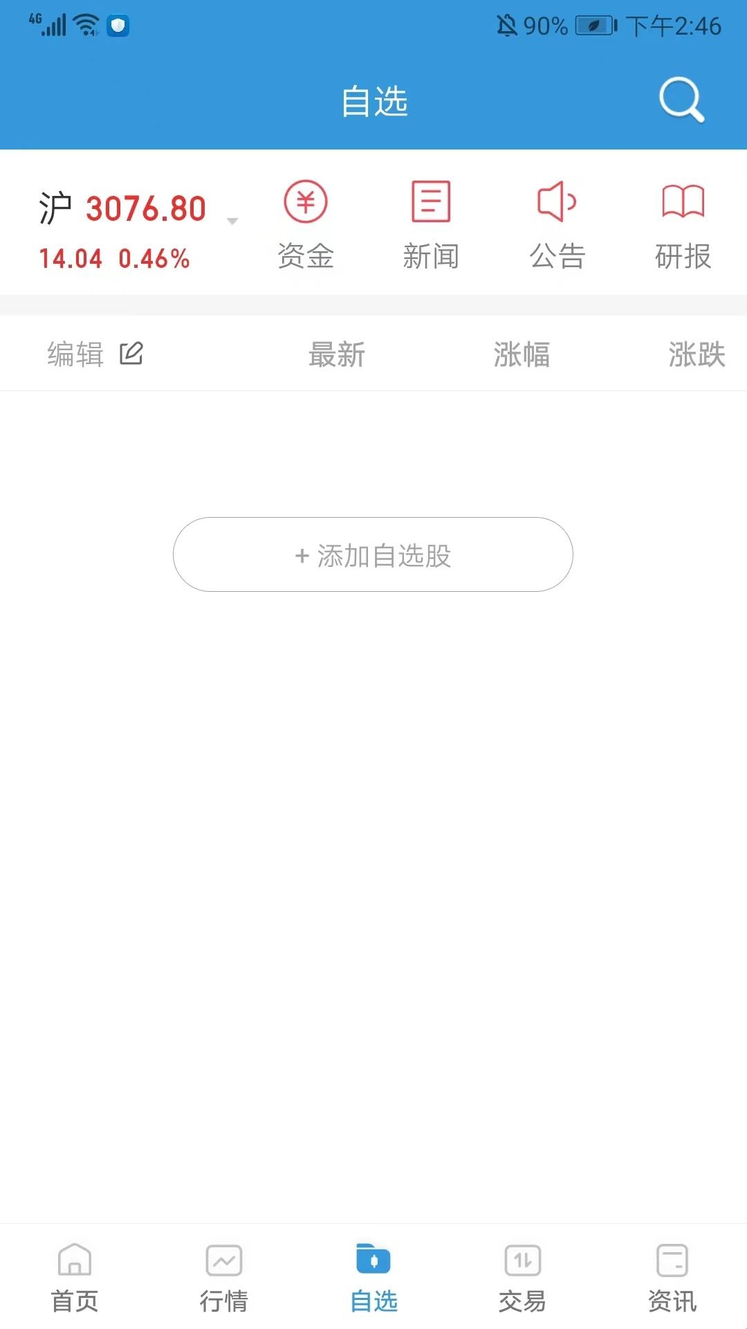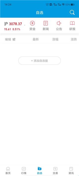 4、在自选界面,我们可以添加自选股,方便之后更加快捷的查看,