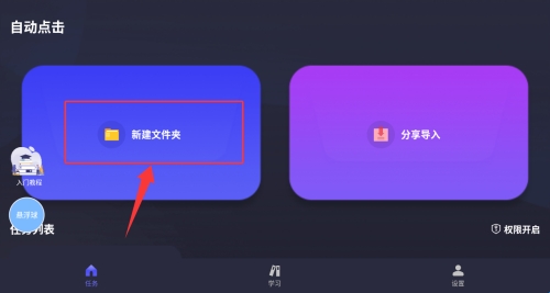 1、在自动点击界面选择"新建文件夹"选项,进入创建页面。