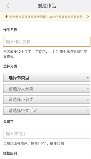 4、然后填写小说作品的详细信息;