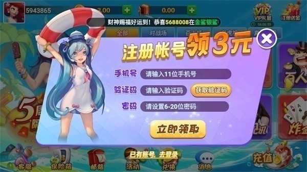 4、新用户进入游戏还可以领取免费的体验金,可以在线体验精彩的游戏;