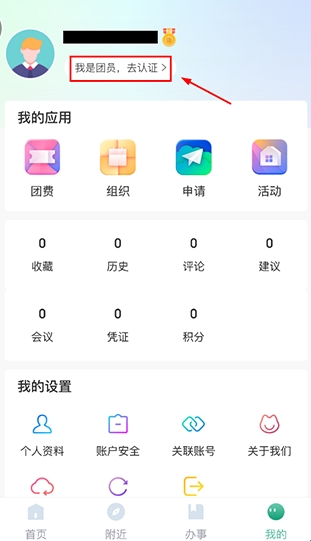 如果是团员的同学,在注册完成后,需要进行认证,点击左上方【去认证】,按提示填写个人信息申请认证。