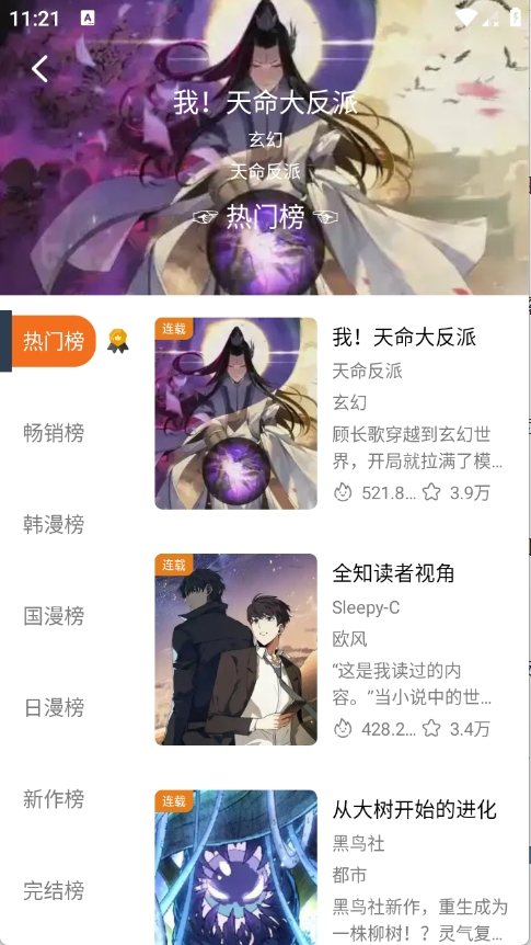 5、排行榜栏目主要是将漫画根据热度进行排序。