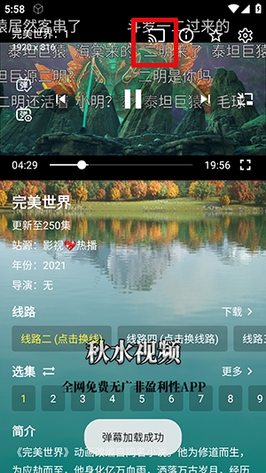 4、点击影片进入播放界面,点击红框位置可以投屏。