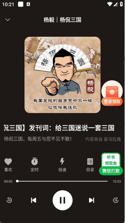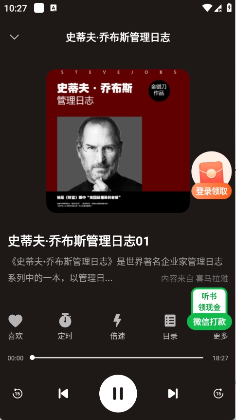 2、支持定时关闭、播放速度调节、离线下载、跨设备进度同步等功能,并配备高质量音频解码,提升收听舒适度。
