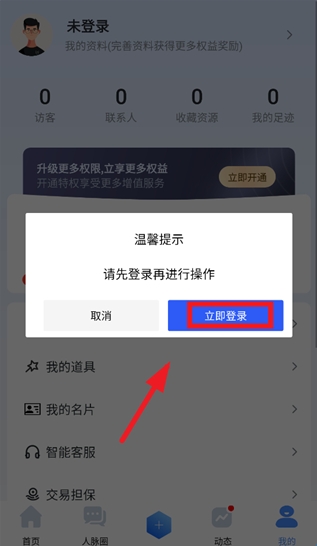 2、跳出温馨提示后点击立即登录