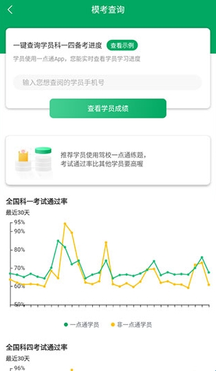 4、输入学员的手机号,可以轻松一键查询学员科一到科四的备考进度;