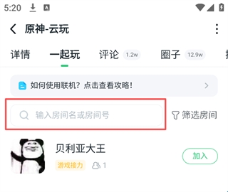3、如果你的好友已经创建好了房间就点击加入,或者自己创建房间。