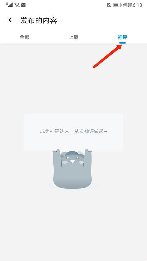 3、如图,可看到全部、上墙和神评等分栏,但是没有可以删除的按钮,这是官方为了提高评论治疗,优化评论氛围做出的努力,以让大家对自己言论负责的角度,不仅优化的评论质量,还杜绝的不正风气,