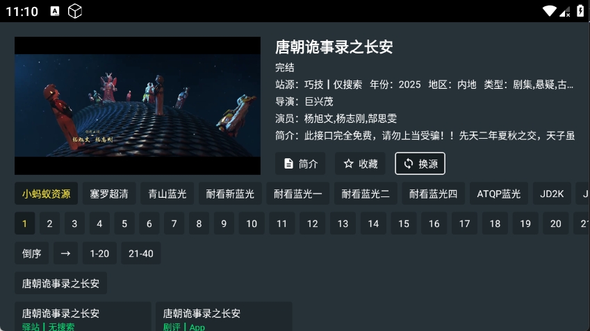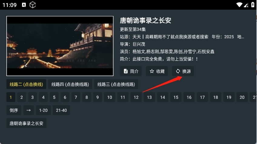 1、点开影视进入到播放页面,点击换源。