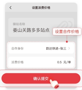 6、站点选择好后,设置合作价格,点击【确认提交】发起审批,然后需要提醒站点老板查看并审核。