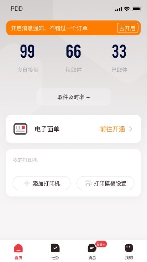 拼多多快递员版,是一款拼多多公司专为快递员打造的上门揽件app,软件内置多个功能板块,涵盖包裹提醒、工作通知、电子面单、今日接单、代取件、已取件等,用户可以实时查看当日工作量以及取件派件时间流畅,大大提升了工作效率,降低差评出现。