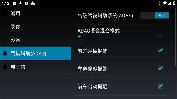 驾驶辅助界面提供了设置开车遇险报警功能的选项。
