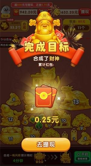 1、红包奖励:合成出最高阶的物品后,玩家可以获得兑换红包的机会,红包金额按照一定比例计算。