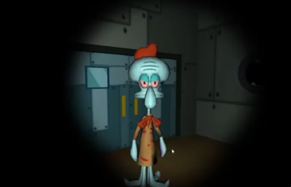 5、在海绵宝宝遭到章鱼哥的毒手后,粉碎机这边用自由视角可以找到,一个彩蛋二维码图片