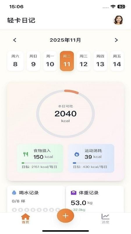 1、热量统计:自动汇总每日摄入与消耗,热量差额一目了然。