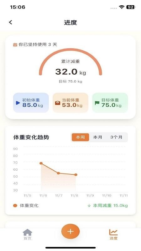2、全面跟踪:不仅是饮食,还能在 15秒内轻松搞定运动与身体数据(如体重、体围)记录,全面见证你的每一点变化。