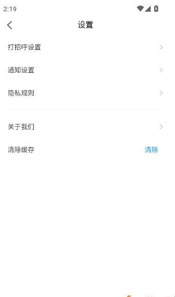 3.之后进入“设置”菜单选项界面,找到“打招呼设置”按钮点击进入下一步