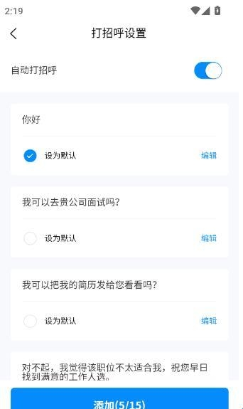 职聪人才网APP手机版怎么添加新的自动打招呼语?