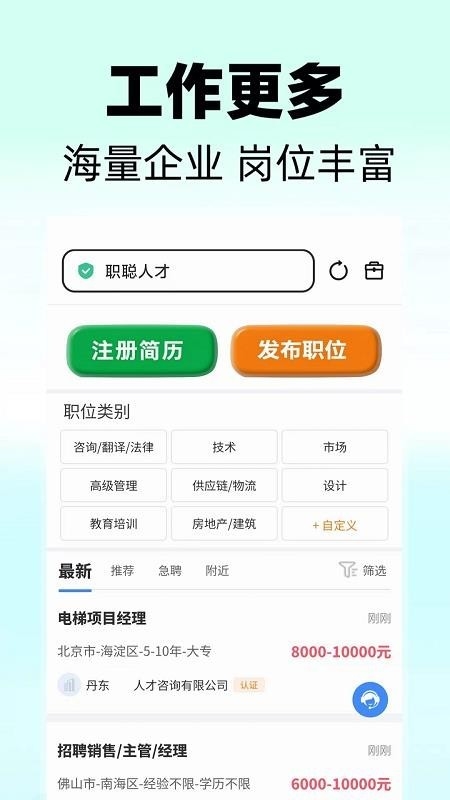 职聪人才网app是一款非常好用的求职招聘类软件,这款软件内包含了大量的企业招聘信息,丰富的岗位提供给用户选择,用户可以根据自身技能、水平、和兴趣选择最适合自己的工作职位进行面试。软件内的每一个岗位都是真实有效的,用户可以放心进行选择,有需要的朋友们千万不要错过哦。